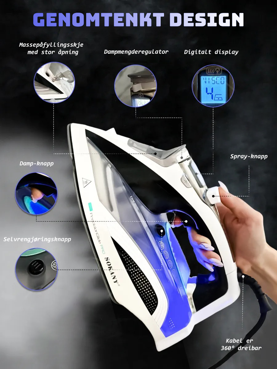 Opplev den fulle ytelsen og designet til Homezy dampstrykejernet